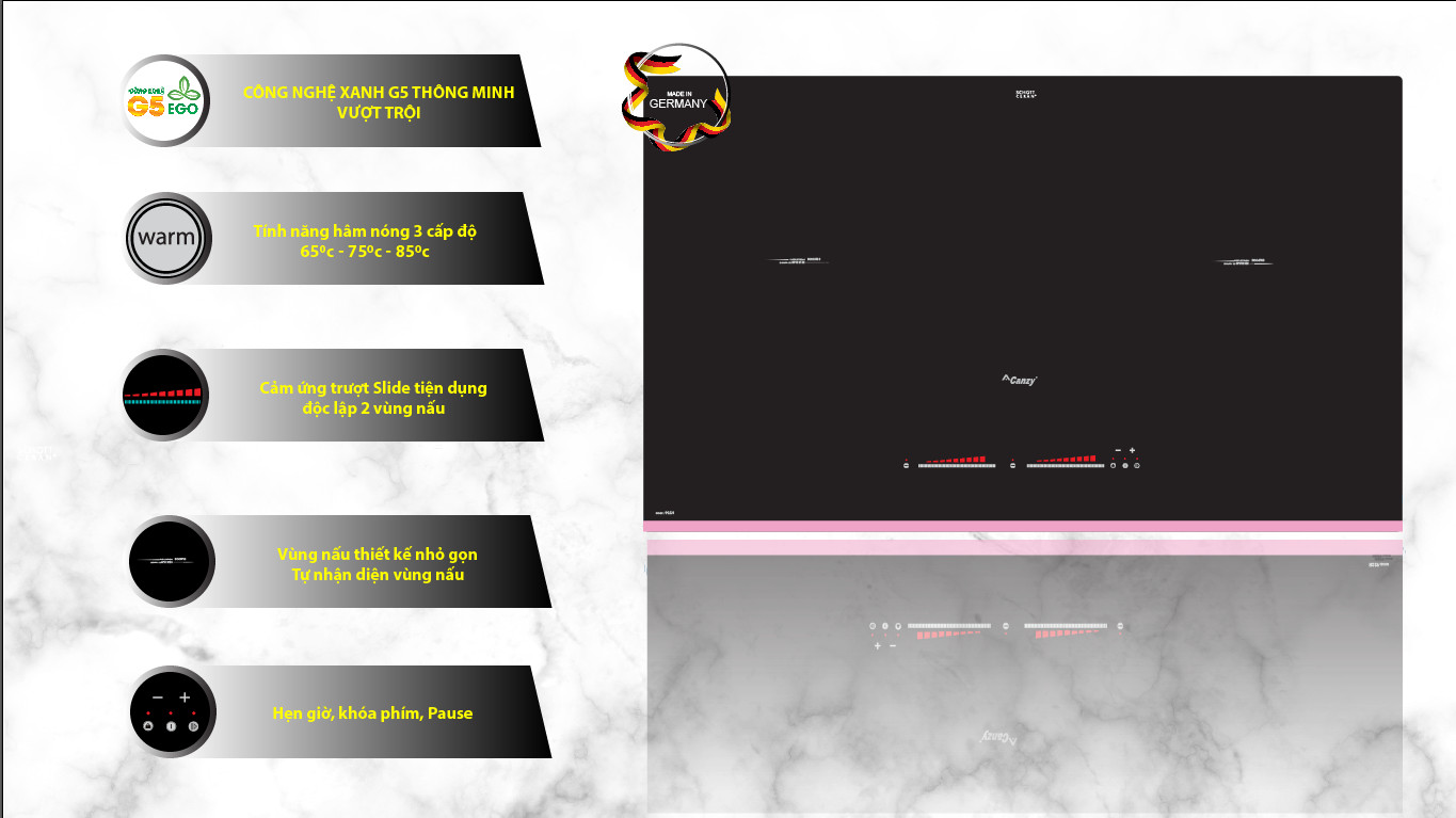 - Thiết kế mỏng nhẹ, sang trọng với mặt kính Schott chịu lực, chịu nhiệt tốt, dễ dàng vệ sinh