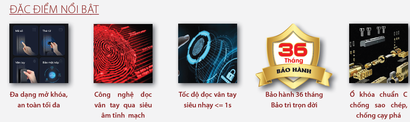 Vân tay: Lưu trữ đến 100 dấu vân tay khác nhau, cho phép cả gia đình bạn có thể dễ dàng sử dụng.