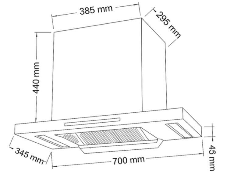 Máy hút mùi chữ T với kiểu dáng tinh tế, phù hợp với mọi không gian bếp hiện đại.