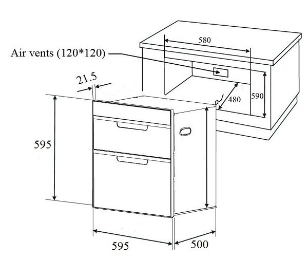TÍNH NĂNG SẢN PHẨM • Máy sấy bát tiệt trùng âm tủ THÔNG SỐ KỸ THUẬT • Chất liệu: Inox kính đen chịu nhiệt |